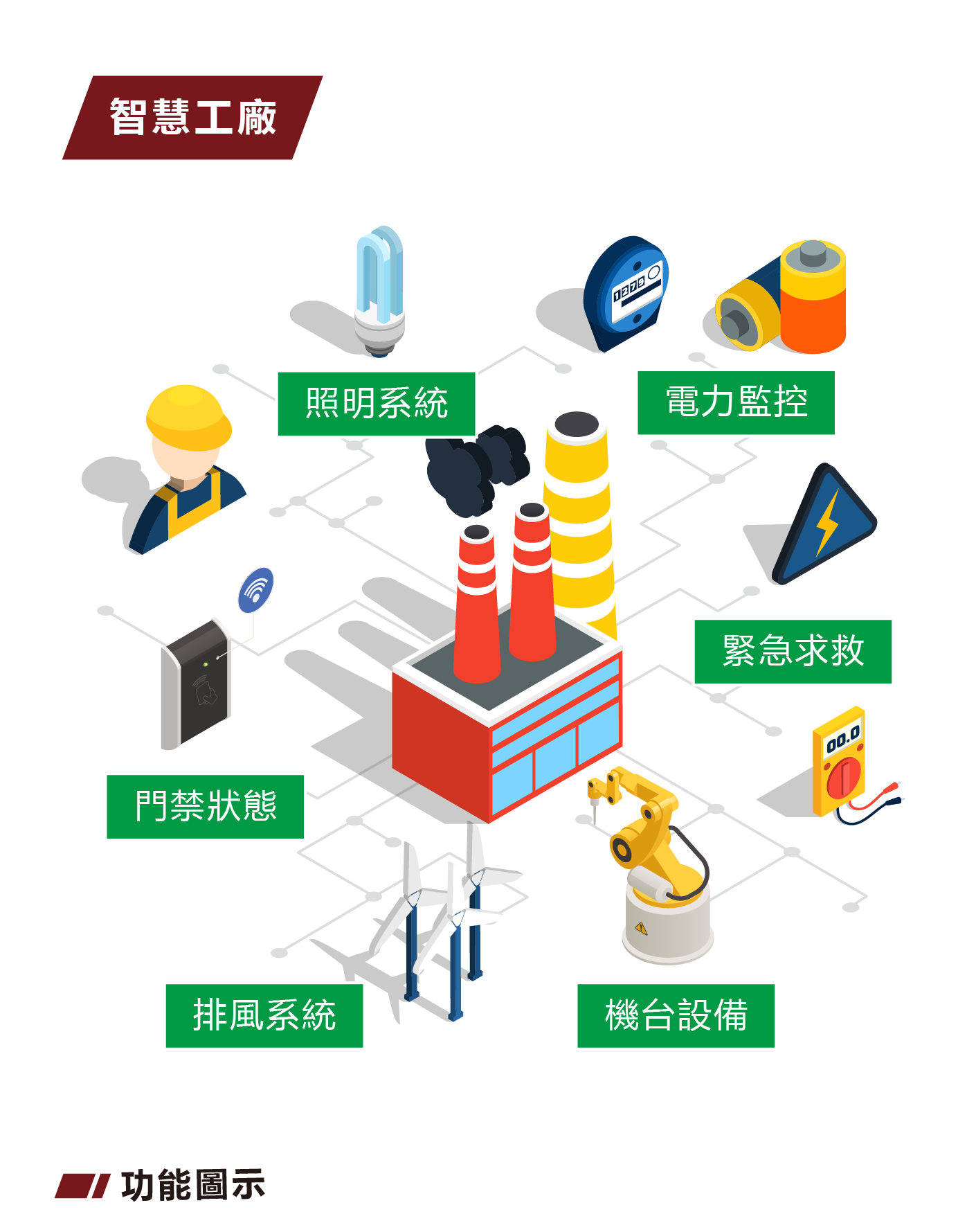 智慧工廠結合物聯網技術,提供全面的製造流程監控與優化。透過自動化系統,從生產、設備管理到品質控制,都能實現實時數據分析,協助提升生產效率、降低成本,並增強產品質量。此系統不僅提升透明度,也為企業提供決策支持,實現精細化管理與精確預測。